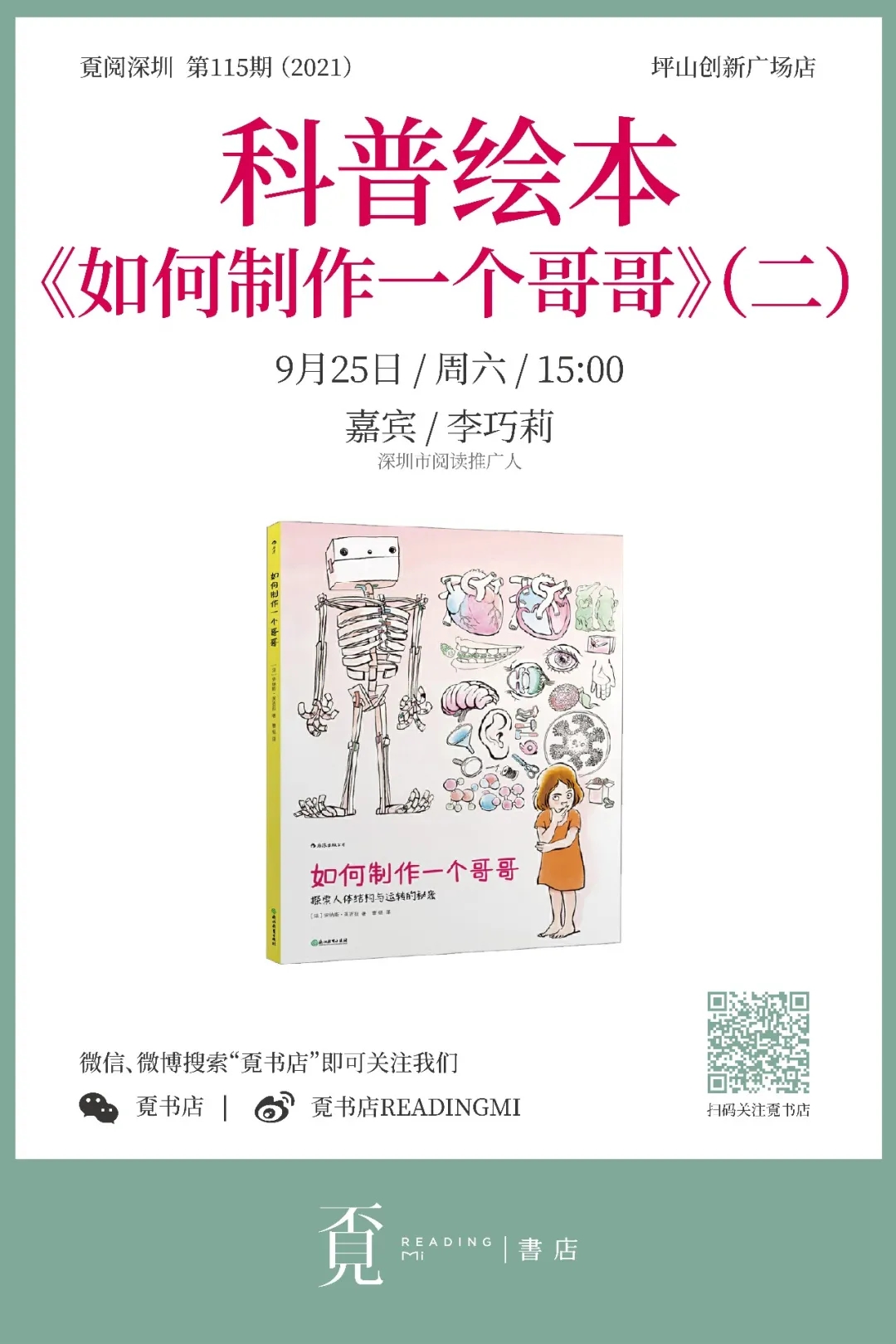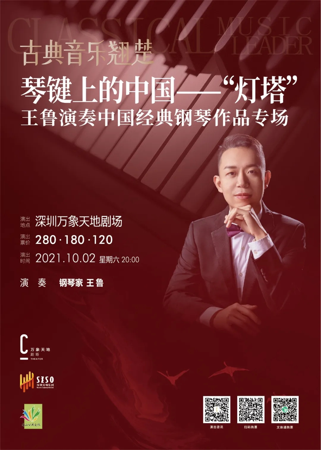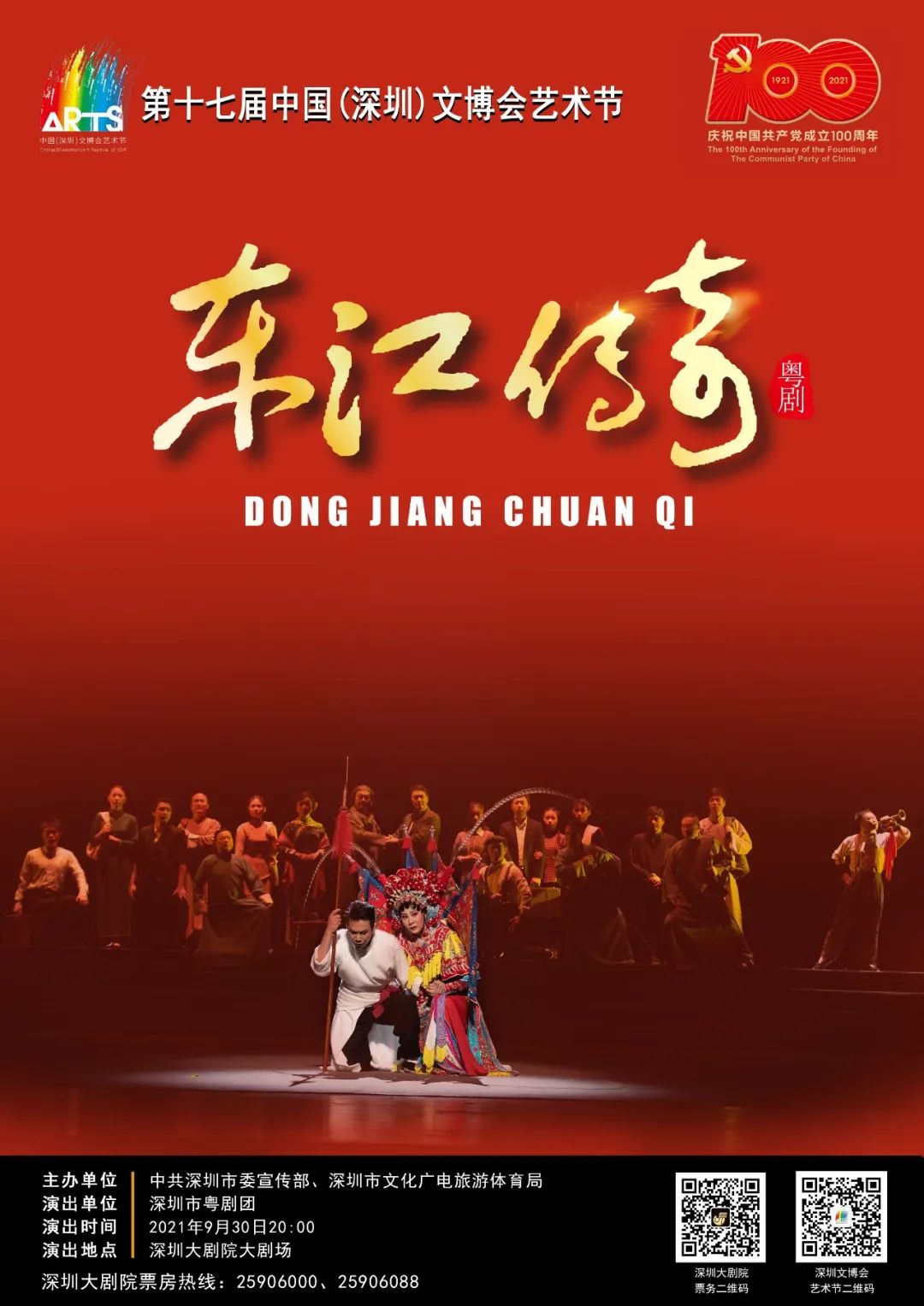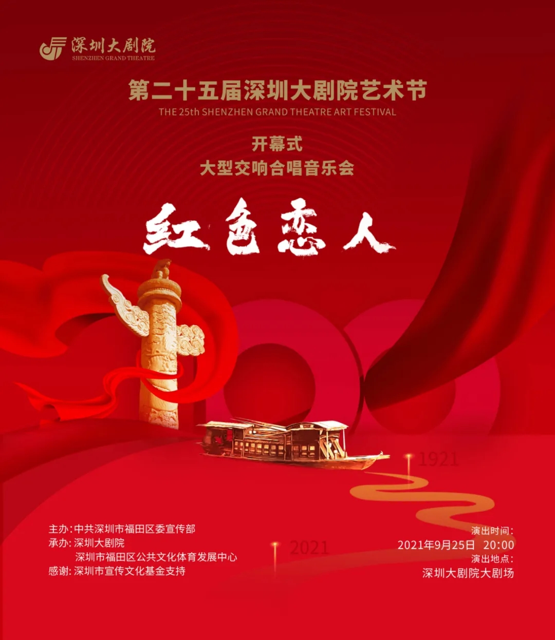 # 防疫小贴士 疫情期间,请大家做好个人防护,戴口罩、勤洗手、常通风、不聚集,尽快接种疫苗,保持社交安全距离,共筑免疫屏障。 2021年第39周 菜单目录 *受疫情影响,部分活动可能会延期或取消。请大家及时留意相关通知,以免造成损失 抢 票 TICKET-GRABBING 大型交响合唱音乐会《红色恋人》 演出日期 | 2021年9月26日20:00 一键导航 | 深圳大剧院·大剧场 抢票方式 | 1.在深圳艺文惠后台回复”抽奖 2.点击下方小程序进入抽奖页面 *谢绝6周岁以下儿童入场;年满6周岁,身高未满1.2米的儿童需出示身份证,则可凭票入场。 大型现代粤剧《东江传奇》 演出日期 | 2021年9月30日 20:00 一键导航 | 深圳大剧院·大剧场 抢票方式 | 点击文末左下角“阅读原文”或公众号菜单栏—【文化菜单】-【互动参与】-【热门抢票】 *谢绝6周岁以下儿童入场;年满6周岁,身高未满1.2米的儿童需出示身份证,则可凭票入场。 经典童话人偶剧《小红帽》 演出日期 | 2021年9月26日 一键导航 |深圳戏院剧场(一号厅) 抢票方式 | 点击文末左下角“阅读原文”或公众号菜单栏—【文化菜单】-【互动参与】-【热门抢票】 艺术大观 爱之梦——纪念李斯特诞辰210周年旅美钢琴家周希希赏析音乐会 演出日期 | 2021年9月25日 晚上20:00 一键导航 |深圳大剧院音乐厅 抢票方式 | 点击文末左下角“阅读原文”或公众号菜单栏—【文化菜单】-【互动参与】-【热门抢票】 *谢绝身高1.2米以下儿童入场;年满6周岁,身高未满1.2米的儿童需出示身份证,凭票入场。 我们的节日——深戏民乐演出季:国庆民乐音乐会 演出日期 | 2021.09.30 周四 20:00 一键导航 | 深圳戏院 演出票价 | 50/80/120/180元 演出介绍 2年时间,已在元宵、端午、中秋、七夕、国庆、重阳、跨年等传统节日及重要时间节点推出近20场专场民乐音乐会,以节日欢庆、抗疫专题、戏曲艺术、影视金曲、红色经典、民乐与诗朗诵等为演出主线,作品主题积极向上,用中国传统乐器以独奏、合奏形式演奏中国传统音乐,将东方音律之美、文学之美、人声之美呈现在舞台上,为市民朋友勾勒出了一幅又一幅中国风十足的美丽画卷。 扫码购票 流动的时光 龚琳娜·二十四节气古诗词音乐会 演出日期 | 2021年9月25日 20:00 一键导航 | 深圳保利剧院 演出票价 | 180/280/380/480/680/880元 演出介绍 这是一场由歌唱家龚琳娜领衔、作曲家老锣原创,中西合璧的龚锣新艺术乐团演奏的古诗词音乐会。这些古诗词音乐作品,无一不是名篇佳作,不仅在内容与节气相契合;在歌曲旋律上,风格更是丰富多变。每一首都自成一格,但彼此之间又相互衬托,诉说沉静流动的春夏秋冬,记录时光的流逝。 扫码购票 大剧院艺术节-开幕式大型交响合唱音乐会《红色恋人》 演出日期 | 2021-09-26 星期日 20:00 一键导航 | 深圳大剧院大剧场 演出票价 | 180/280/380/480/680/880元 演出介绍 第二十五届深圳大剧院艺术节开幕式大型交响合唱音乐会《红色恋人》将为观众呈现一幅幅波澜壮阔的党史画卷,见证一部部不朽的革命史诗,献礼党的百年华诞。本场音乐会邀请著名作曲家、声乐教育家姚峰担任指挥,深圳大剧院爱乐乐团担任伴奏,深圳大剧院合唱团、深圳音协合唱团、深圳春之声合唱团、深圳市盐田区海之声合唱团、深圳中学金钟少年合唱团与深圳本土歌唱家携手献上深情赞歌。本场音乐会将是一次意义非凡的演出活动,用优美的歌声体现对党的赤子情怀,并站在深圳文化艺术发展新的起点上,不忘初心,牢记使命,继续前行。 扫码购票 开心麻花(龙岗)惠民演出开心麻花年度大戏《了不起的爹地》 演出日期 | 2021-09-25 周六 15:00/20:00 一键导航 | 龙岗文化中心大剧院 演出票价 | 38/80/180/280/380元 演出介绍 上世纪90年代,个体户老赖凭借祖传马桶制作工艺,一跃成为全国第一的“马桶大王”。可是老赖的儿子要和他断绝父子关系。为了挽回儿子,老赖病急乱投医,找到了皮包公司小老板施光耀。施光耀和他的石库门F4成员开始为老赖集训,从各方面让他速成为一个“了不起的爹地”。老赖和儿子的这段“孽缘”如何才能冰释前嫌…… 扫码购票 “新现场”高清放映·英国国家剧院《弗兰肯斯坦》 演出日期 | 2021.09.25 周六 15:30 一键导航 | 演艺中心·音乐厅 演出票价 | 99/120元 演出介绍 戏剧《弗兰肯斯坦》改编自玛丽·雪莱1818年的同名小说。诞生于工业革命浪潮中的《弗兰肯斯坦》被后世的许多学者视为科幻文学史的开山之作,玛丽·雪莱也因此被视为“科幻之母”。小说的核心情节是一位“现代普罗米修斯”弗兰肯斯坦的实验悲剧,灵感来自当时的科学成果,其中的人造怪物形象广为人知。 扫码购票 小猪佩奇中文版舞台剧第二季《完美的下雨天》 演出日期 | 2021-10-01 15:00/20:00 一键导航 | 坪山大剧院 演出票价 | 80/120/160/220元 演出介绍 如果你拥有一个假期,正准备愉快地度过,但却突然下起了雨…安排好的行程都取消了,衣服也全部淋湿了,一切都好像变得很糟糕,心情也跟天气一样变得灰蒙蒙的。难道就没有让人高兴的事情了吗?当然不会!大家提议做一个“家庭派对表演” 扫码购票 《天空之城》久石让&宫崎骏动漫经典音乐作品演奏会 演出日期 | 2021-09-30 星期四 20:00 一键导航 | 深圳华夏艺术中心大剧场 演出票价 | 180/280/380元 演出介绍 宫崎骏与久石让,一位是日本动画电影的领军人物;一位是被誉为“东
