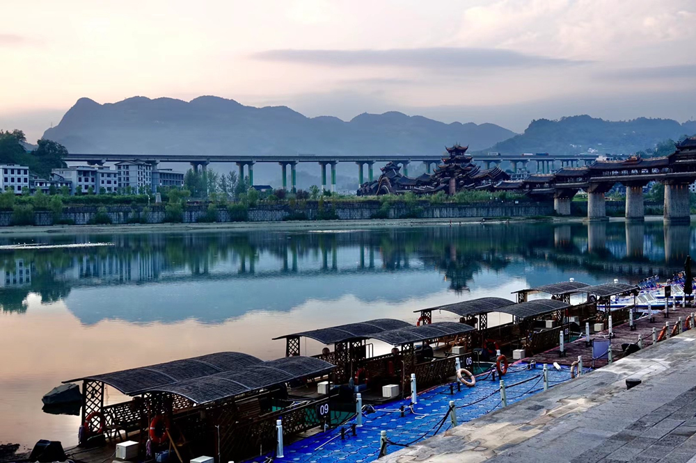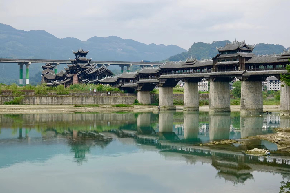 横跨于濯水古镇阿蓬江上的超长廊桥有“世界第一风雨廊桥”之称。李仁奇 摄