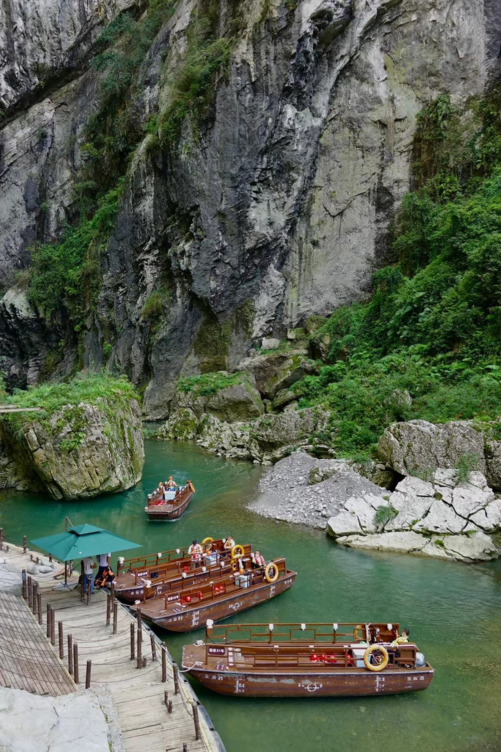 河边码头,几艘游船躺在水面上,等待着游客的到来。李仁奇 摄