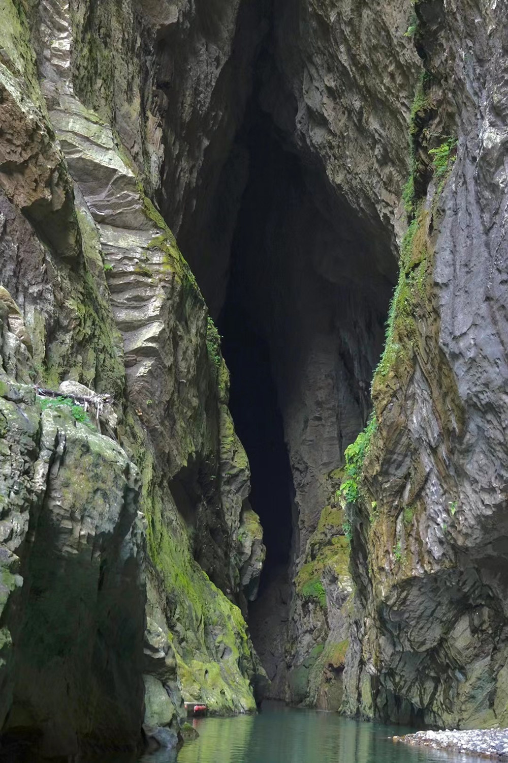 “暗河”指的是这条河流穿行溶洞的部分。里面漆黑一片,伸手不见五指,但中段有“苍天有眼”(实为天生桥)奇观,末端有形似“天下第一刀”的天空,令人称奇。李仁奇 摄