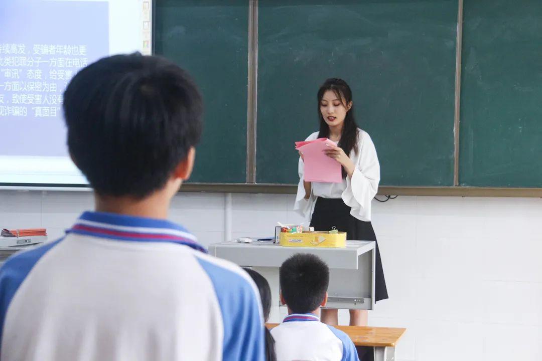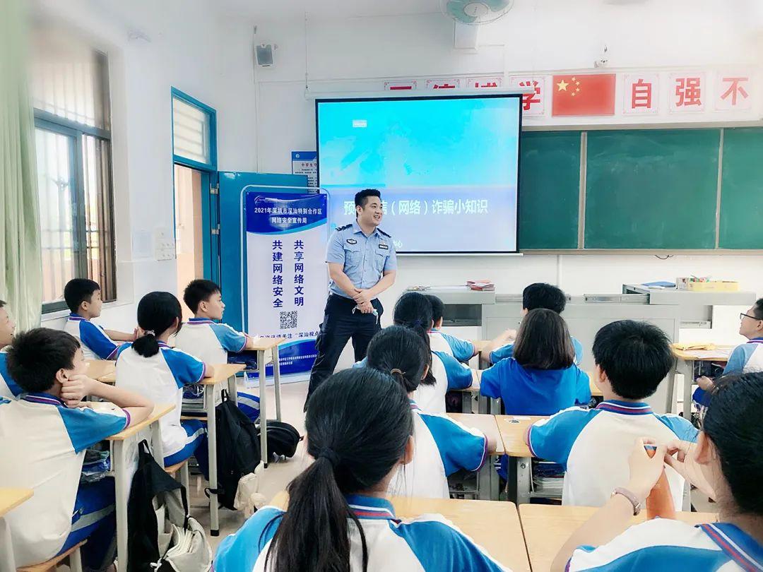 深汕公安分局反诈中心的民警蔡钊斌用生动的案例,让学生在愉快的氛围中了解“什么是网络诈骗”“如何预防网络诈骗”,并通过互动式教学的方式适时地向学生们传授防诈骗知识,博得了学生们的阵阵掌声。