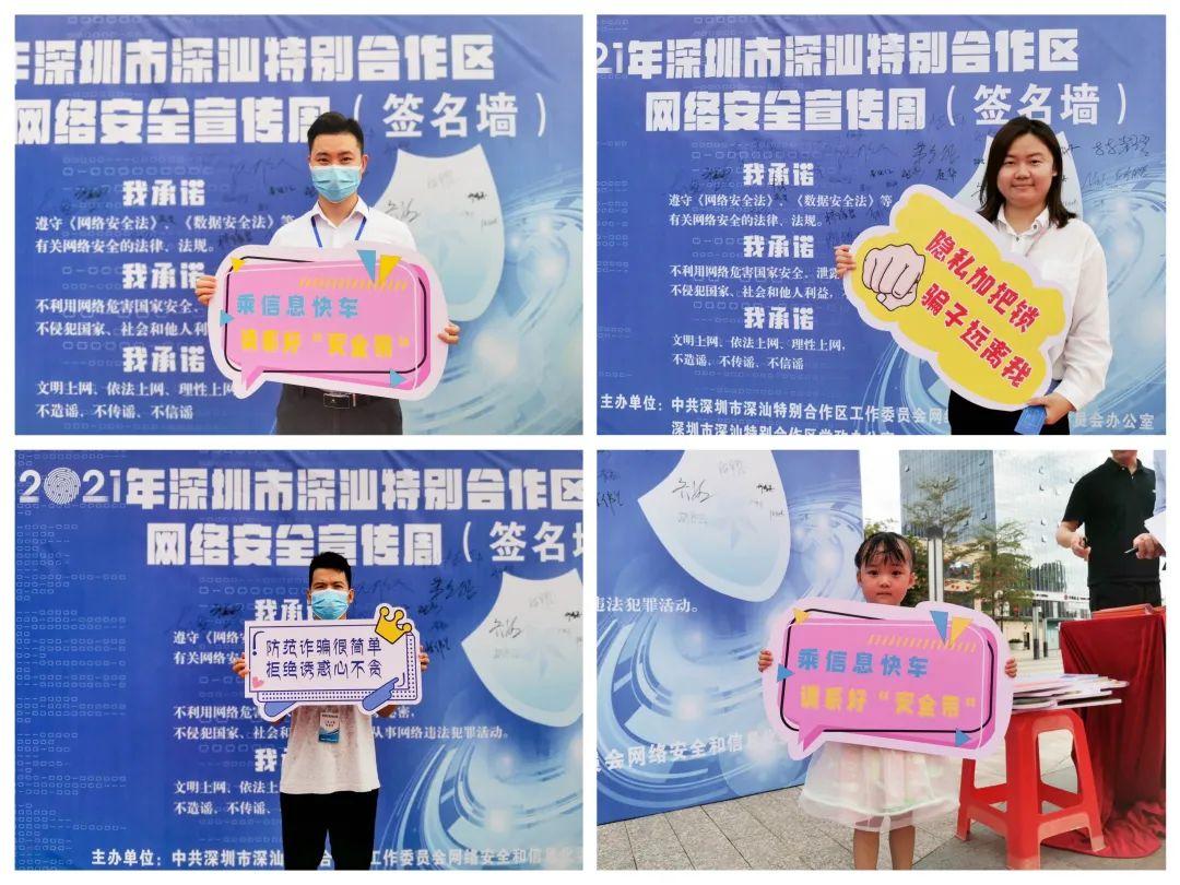 “个人信息勿泄露,安全意识存心头。”在这两天的线下宣传活动现场,随处可见各类网络安全宣传标语,现场还设置了深汕合作区“携手网络新时代争做深汕好网民”倡议活动签名墙,邀请市民签名,共同文明上网。