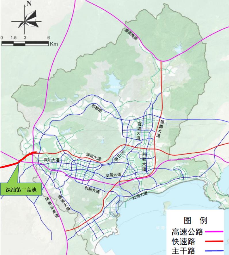 5月27日,深圳市发展和改革委员会印发了《深圳市2021年重大项目计划》,深汕第二高速位列其中。该高速全长72.2公里(现状利用惠深沿海高速31.7公里,新建40.5公里),双向八车道,设计速度100公里/小时,由深圳高速公路股份有限公司开展项目前期工作,预计2022年12月开工,2026年12月建成通车。