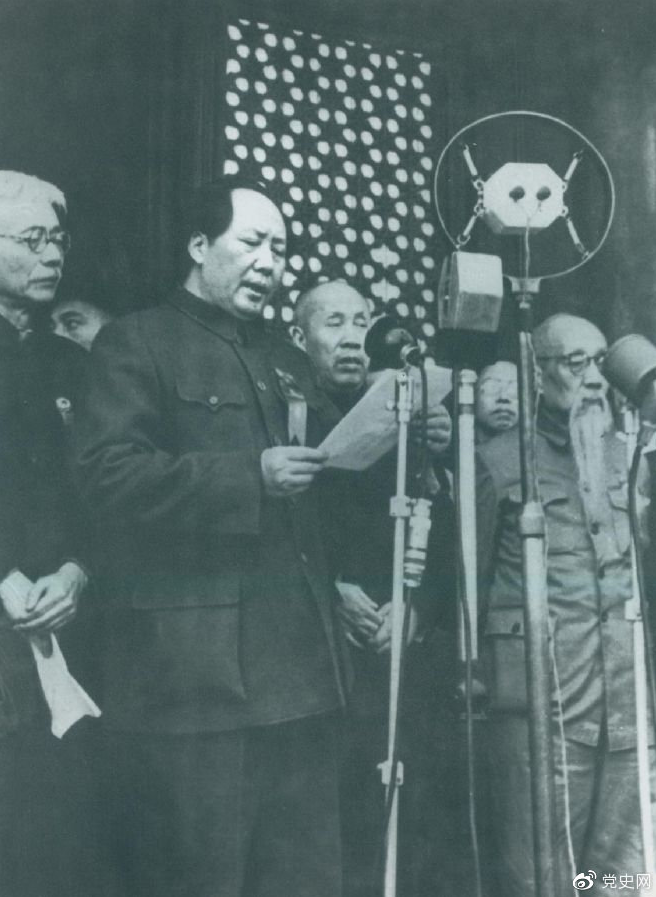 开国大典。1949年10月1日,毛泽东在天安门城楼上庄严宣告:中华人民共和国成立了!