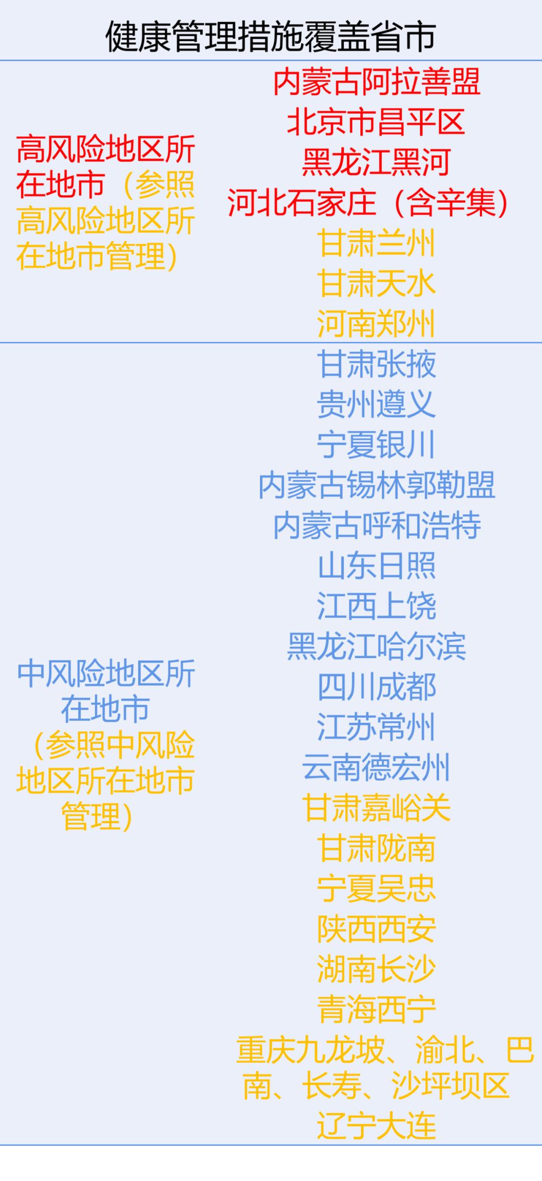 目前我省健康管理措施覆盖省市如下图,广东疾控提醒有相关地区旅居史人员主动报备并配合当地疫情管理措施。