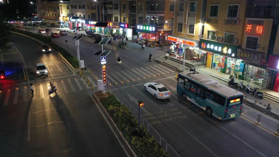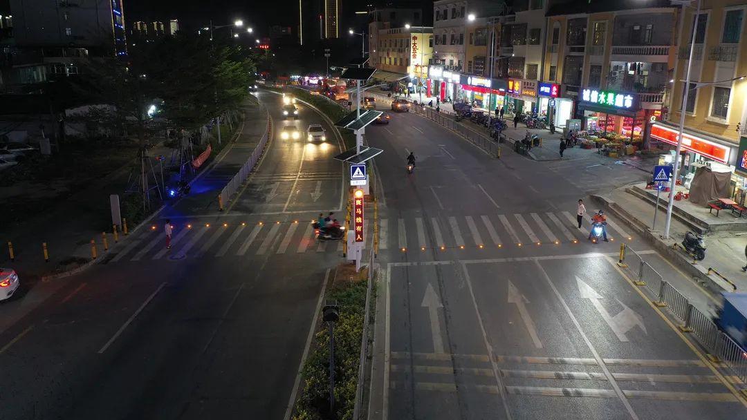 这是深汕合作区首条智能人行道,也是深圳市首次使用太阳能斑马线AI检测行人预警系统。