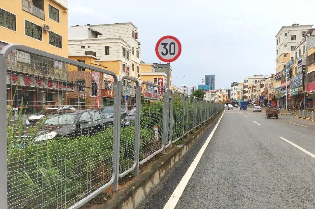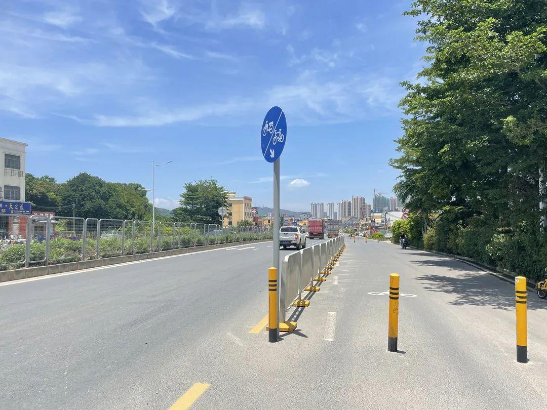 在道路两边加装了护栏和警示柱,设置了非机动车道指示牌,明确划分机动车和非机动车行驶空间。