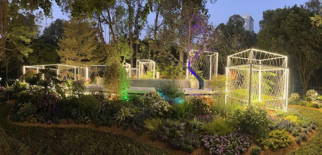 “浮框”花园,主体由矩形浮框构成,利用格栅板做地面铺材,与浮框构成一体,以“蓝白”为主色调,展示未来城市的纯净,绿植在浮框中蓬勃迸发的景象,传达着“负建筑”的生态建筑理念。朋友们逛花展的时候,别忘了来这里打卡哟~