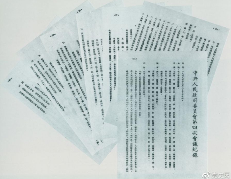 1949年12月2日,中央人民政府委员会第四次会议决议,每年10月1日为中华人民共和国国庆日。图为中央人民政府委员会第四次会议记录。