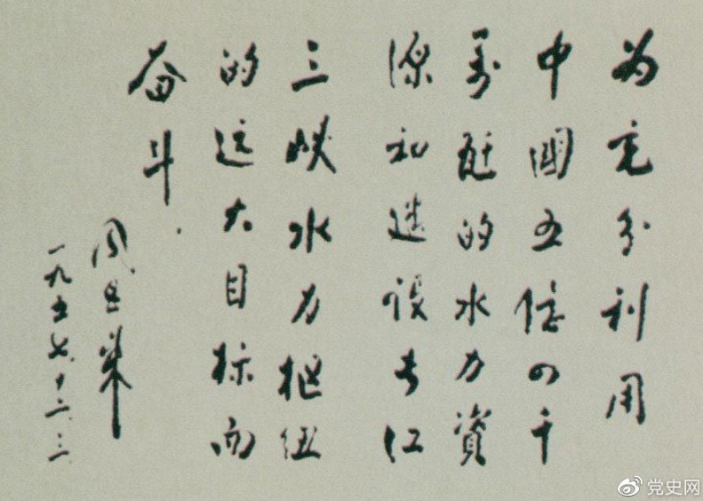 1957年12月3日,周恩来为全国水力发电建设展览会题词。