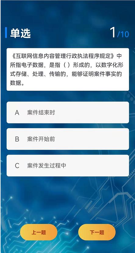 系统在题库中随机抽取10道题目形成答卷,题目形式为不定项选择题。