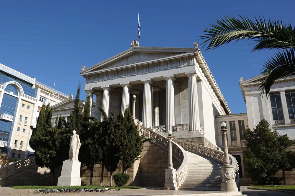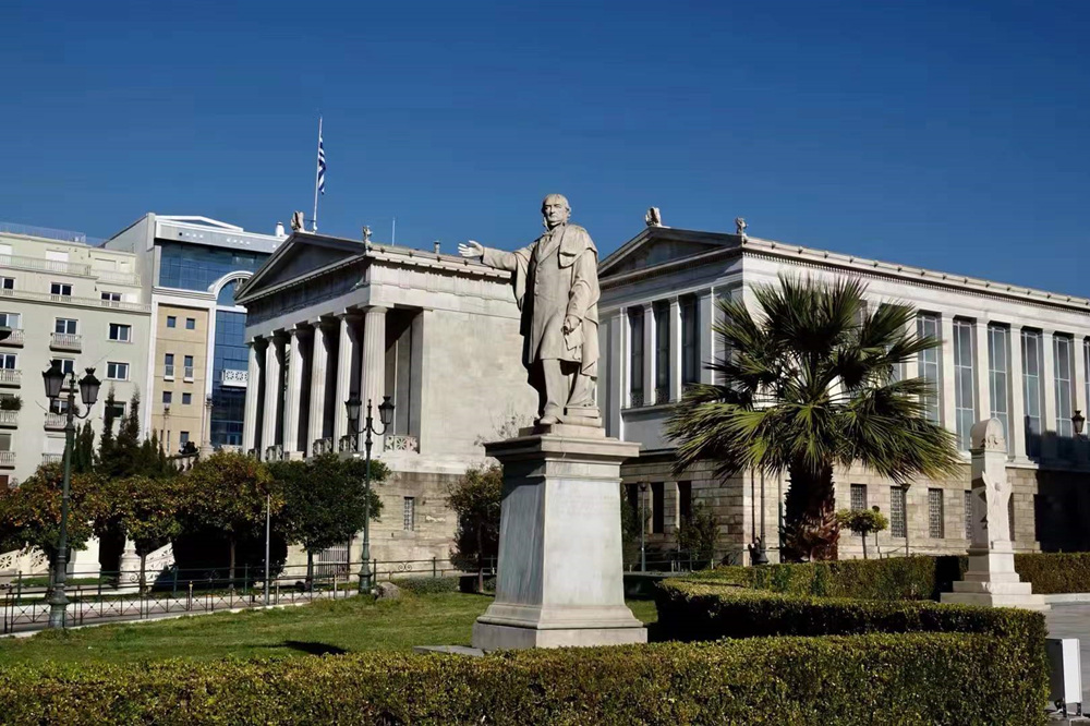雅典在希腊独立之后建了许多优雅的新古典主义建筑,其中最著名的国家图书馆、国家科学院和雅典大学被称为新古典主义三部曲,这三座建筑连在一起,蔚为壮观,是这座城市的地标。李仁奇 摄