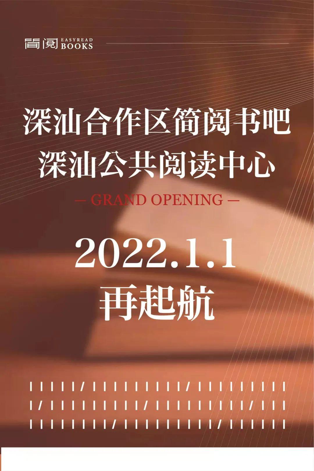 深汕公共阅读中心(深汕简阅书吧)将于2022年1月1日上午10点30分全新起航。阅读中心面积1000平方米,藏书一万余册,并配备了丰富的文创产品。作为深汕特别合作区和深圳出版集团合作共建的公共文化配套,阅读中心环境雅致,配备了休闲阅读区、开放和半开放活动区、文创产品区和艺术展区等,将为全区群众提供免费优质的阅读服务。