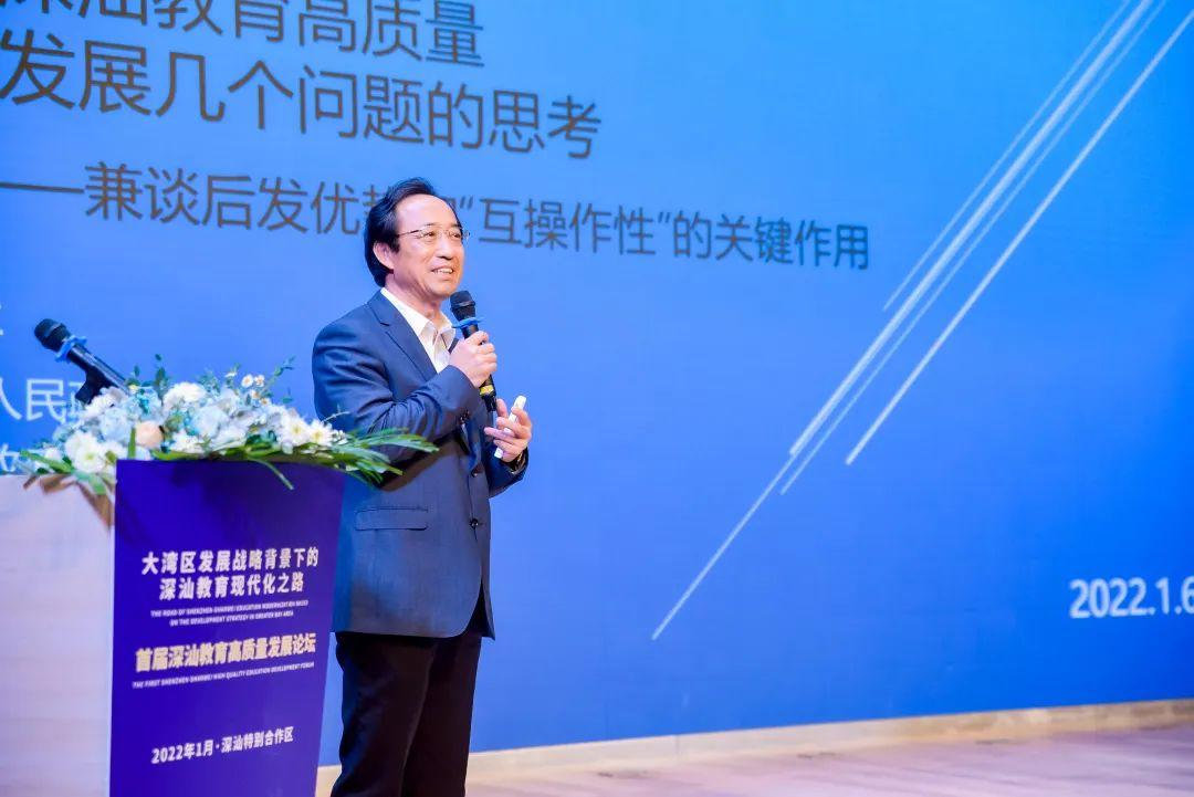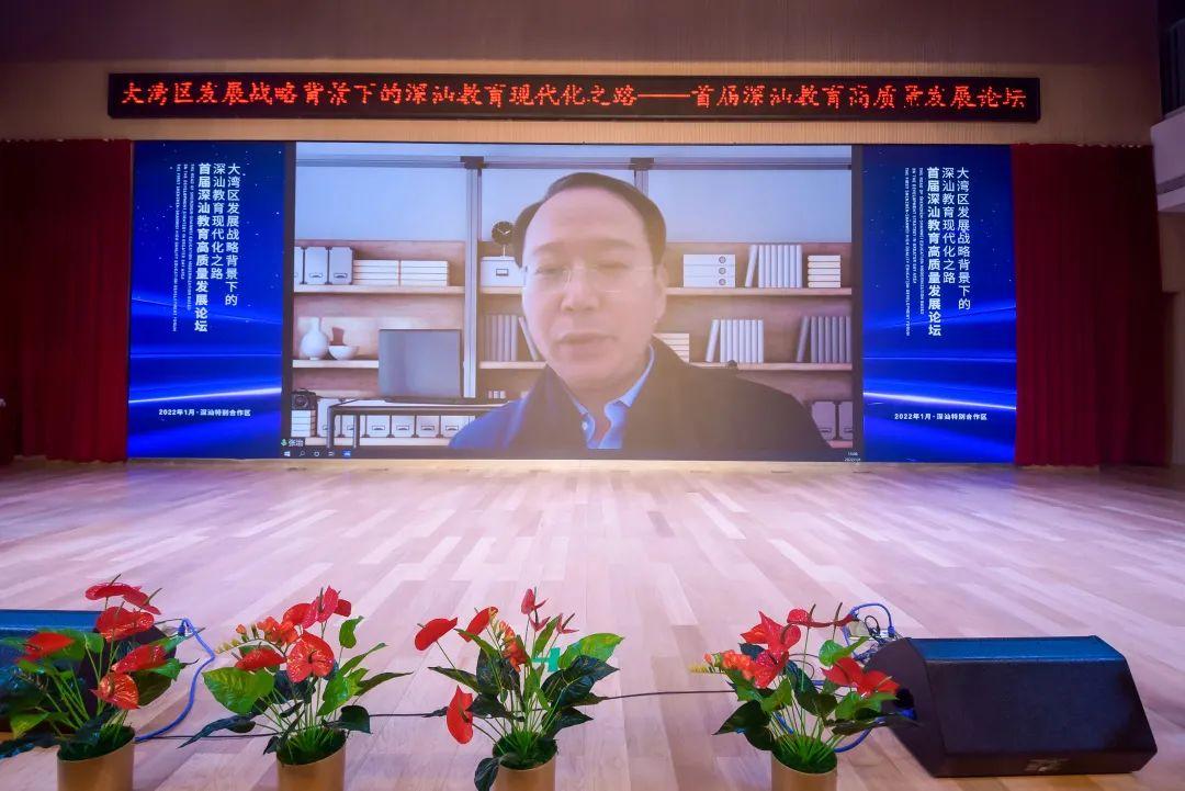 2022年1月6日,由深圳市教育局和深圳市深汕特别合作区管委会联合主办的首届深汕教育高质量发展论坛在深圳市深汕特别合作区(简称“深汕合作区”)南外深汕西中心学校开讲。论坛以“大湾区发展战略背景下的深汕教育现代化之路”为主题,邀请了教育界知名专家学者围绕教育现代化建设、教育数智化和未来学校建设等热门话题进行学术研讨与经验分享,共同探讨深汕教育现代化的发展之路。