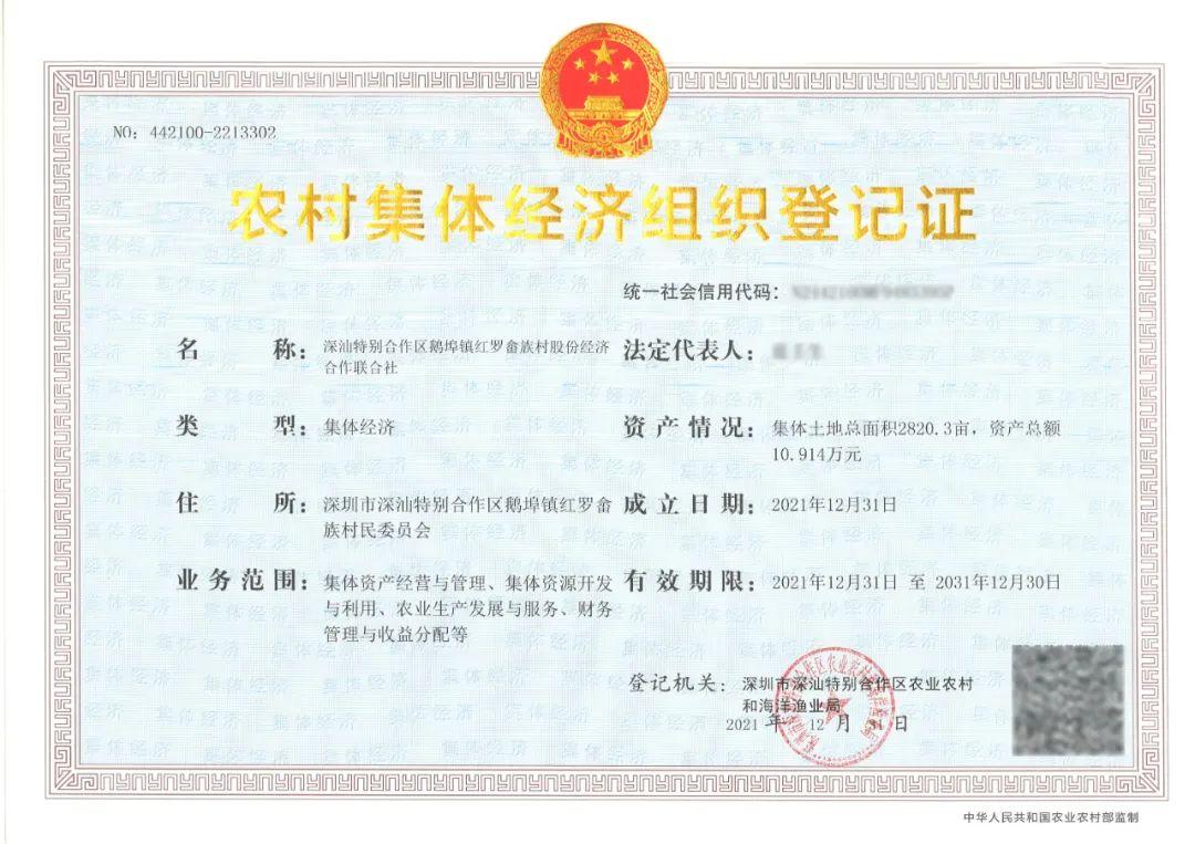 近日,红罗畲族村股份经济合作联合社获颁农村集体经济组织登记证,标志深圳市深汕特别合作区(简称“深汕合作区”)首个股份经济合作联合社正式诞生。