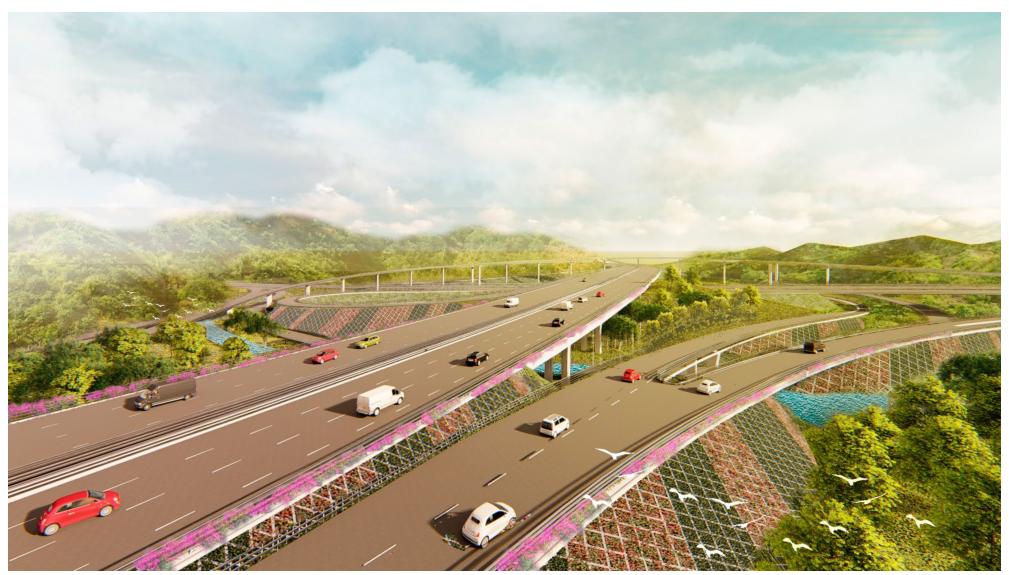 作为承担深圳市深汕特别合作区(简称“深汕合作区”)南北交通的城市重要主干道,通港大道是深汕合作区内部骨架路网“五横六纵”其中“一纵”,亦是深汕生态环境科技产业园(简称“深汕环境园”)主要进出口通道,将分段打造集产业门户、自然风情、海港生活、绿色景观等功能特色的生态廊道,实现道路与沿线自然的融合共生。目前,通港大道整体建设进度完成投资约12.76%,于2022年1月进入分段施工阶段,预计2024年7月建成通车。