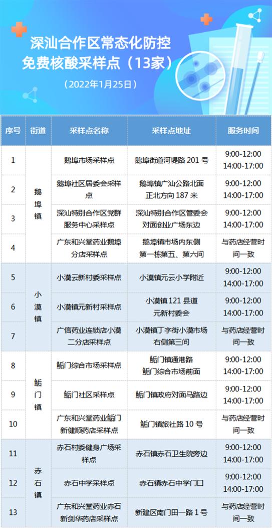 需要注意是,免费核酸检测采样点名单及检测时间将根据实际情况进行动态调整,请市民持续关注图片。为避免跑空,请大家勿过早或过晚前往,切忌踩点!