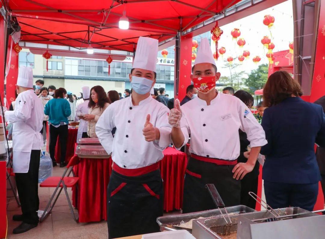 福虎喜迎春,鹏城中国年。活动现场布置了美食展板、横幅,还有灯笼、窗花、中国结、气球等节日挂件,营造出新春的节日氛围。年轻人领着老人、牵着孩子、抱着娃娃,手捧着碗筷和各类赠品在档口间穿行。音乐声、交谈声、欢笑声、吃东西的声音交织在一起,热闹又喜庆。