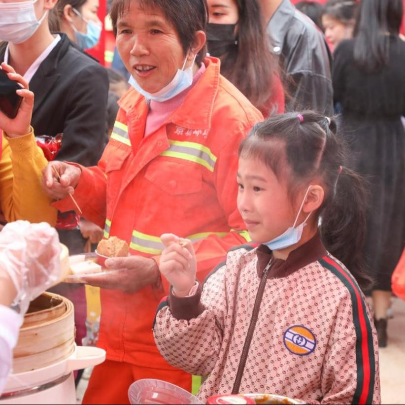 “新城松粿、走马埔切粿,本地老话里都是数得着的。”发完食物,身穿巾帼志愿服务队粉色马甲的陈奋梅向记者介绍,他们精心选择了几种赤石名小吃,都是来自深受本地居民认可和喜爱的老牌名店:松粿是以前家家户户中秋节必做的,新城村的松粿很出名;甜的、咸的切粿,订婚待客是少不了的,冰深村的走马埔做得好吃;还有纯手工磨的豆浆制作的豆腐脑,口感细腻,店家做了很多年,大家都知道。如数家珍的介绍中,透出浓浓的自豪感和节日的喜气。