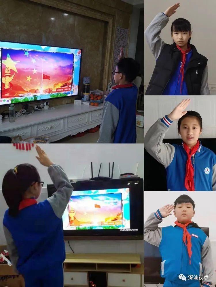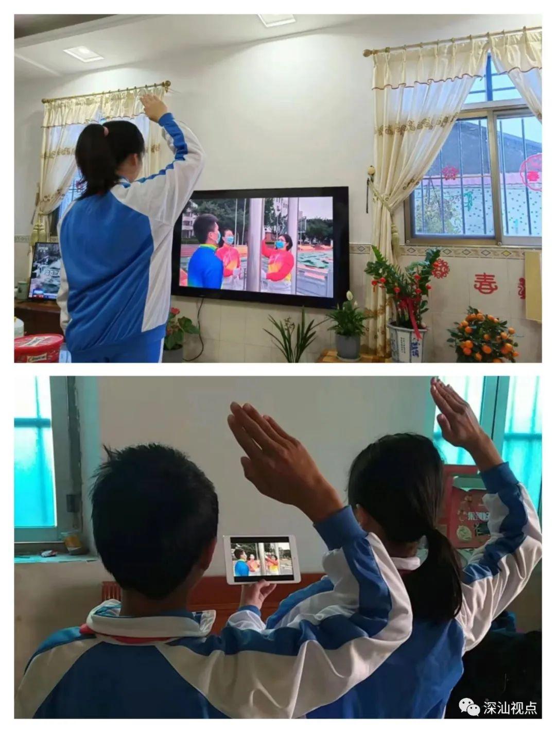 2月21日上午8:30,鲘门镇红泉小学举行线上升旗仪式。屏幕中五星红旗冉冉升起,同学们身穿校服,面向国旗敬礼,高唱国歌,以严肃认真的态度迎接新学期。