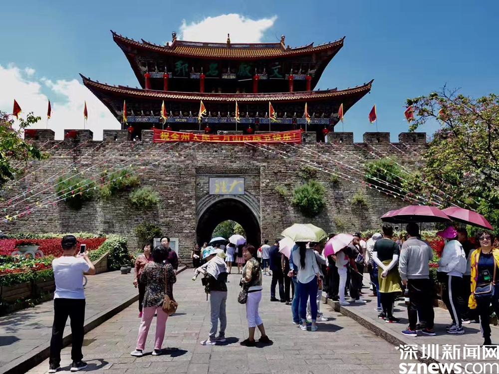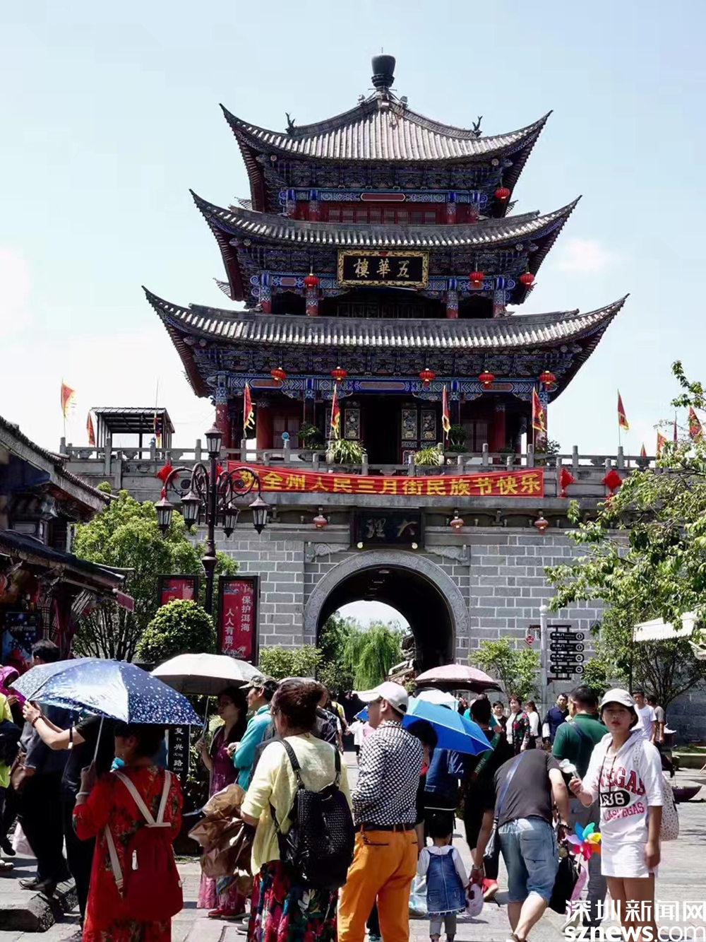 上世纪八十年代以后,大理陆续在遗留下来的300多米古城墙上重修了四座城门楼和城中心的“五华楼”,重现了古都风采,引来无数游客。李仁奇 摄
