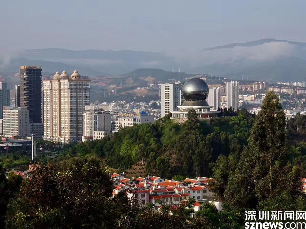 市内的明珠广场,巨大的球体就是高原明珠,在这里可以看到大半个城区的风景。李仁奇 摄