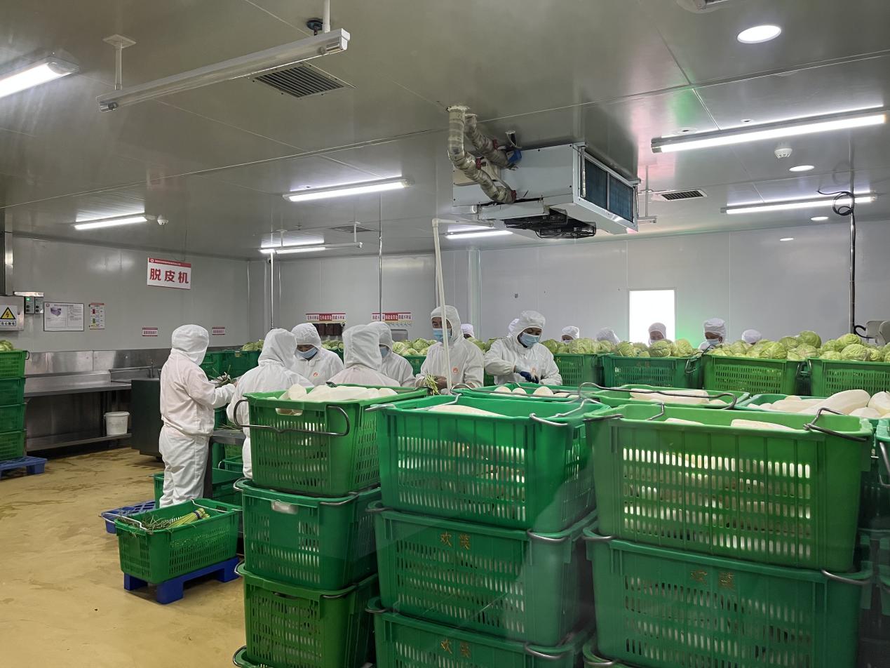 素菜切配间,工作人员穿戴整齐、防护到位