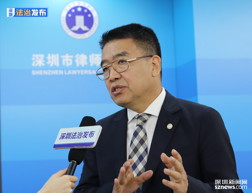 深圳律协会长张斌接受记者采访。