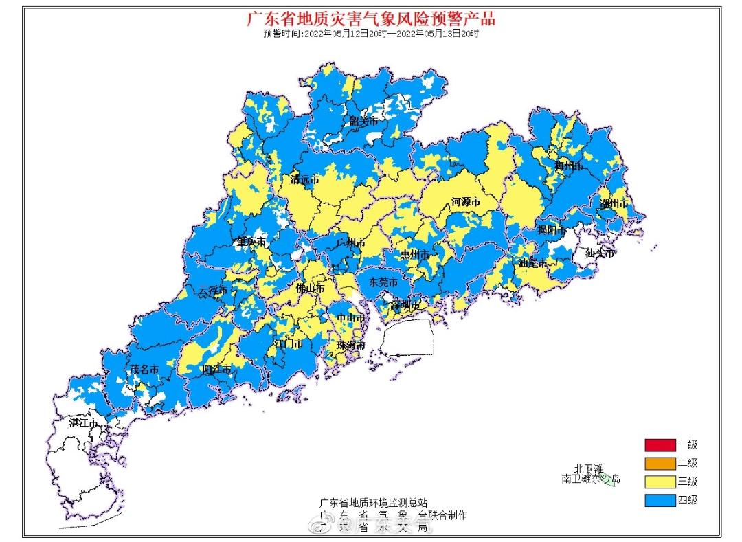 据@广东天气,强降水云团继续东移,目前主要活跃在珠江口附近和东部。持续强降水可能导致低洼路段积水,夜间行车要注意安全,避开积水路段;我省的连日暴雨已导致土壤含水量高,发生地质灾害的风险非常高。