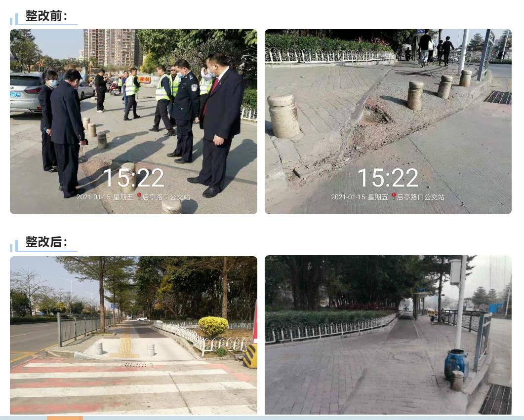 深圳市检察机关对无障碍出行设施开展专项检察监督,图为后亭路口整改前后对比。