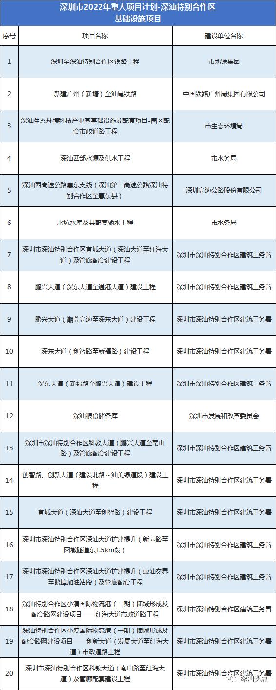 记者从区发改财政局获悉,2022年市级重大项目中涉及深汕特别合作区基础设施项目20个,包括深汕高铁、广汕高铁、深汕西高速公路惠东支线、鹏兴大道、深东大道、科教大道、深汕大道改扩建等外联内通交通项目,及深汕西部水源及供水工程、北坑水库及其配套输水工程等项目,总投资1405.24亿元。
