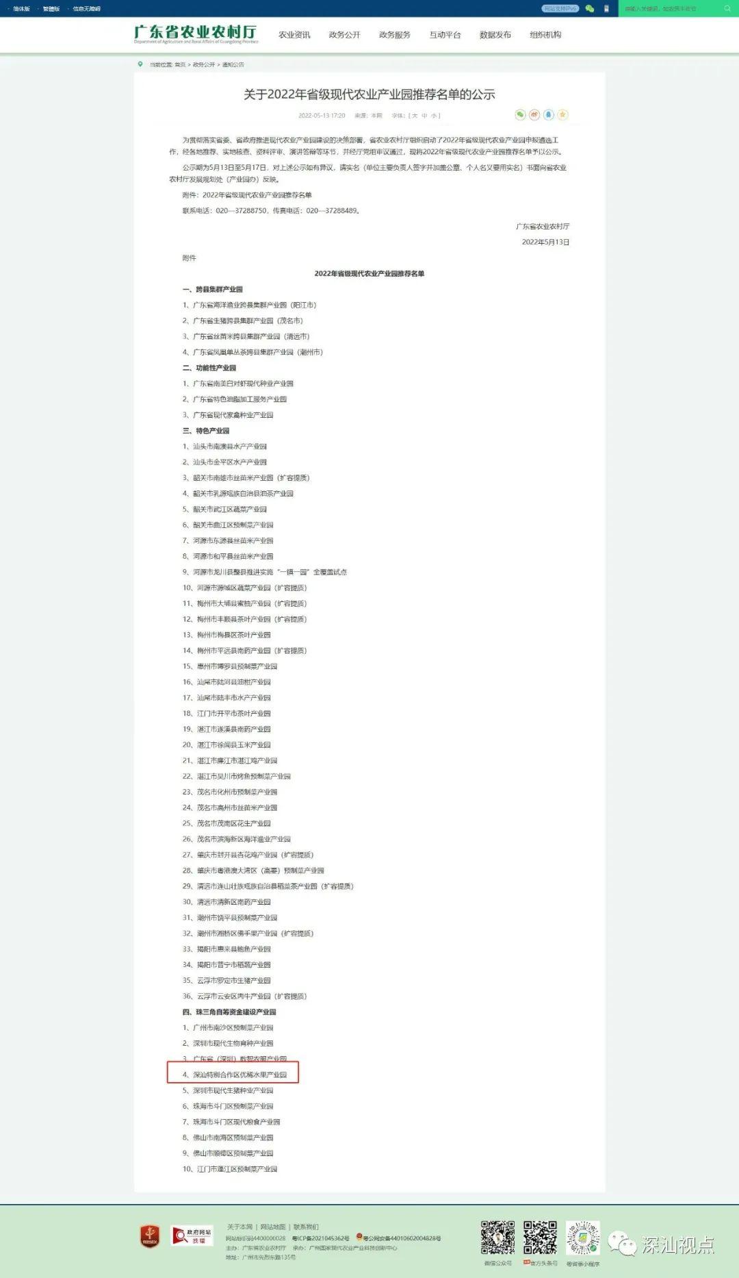 日前,广东省农业农村厅公示2022年省级现代农业产业园推荐名单,共有53个产业园入选,其中包括深圳市4个项目,深汕特别合作区优稀水果产业园榜上有名。