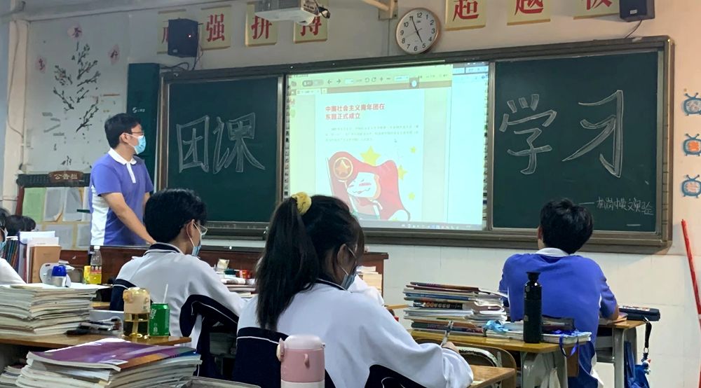 在松岗实验学校,陈丹耿校长从青年视角为团员青年们带来了一堂以“汲取榜样力量,成就多彩人生”为题的生动宣讲。宣讲巧妙融入互动问答、朗读书信、观看视频等青年喜闻乐见的形式,讲活百年团史,让团员青年置身于红色故事环境中,从中感受红色精神,启迪青年团员在新时代中发展自我。