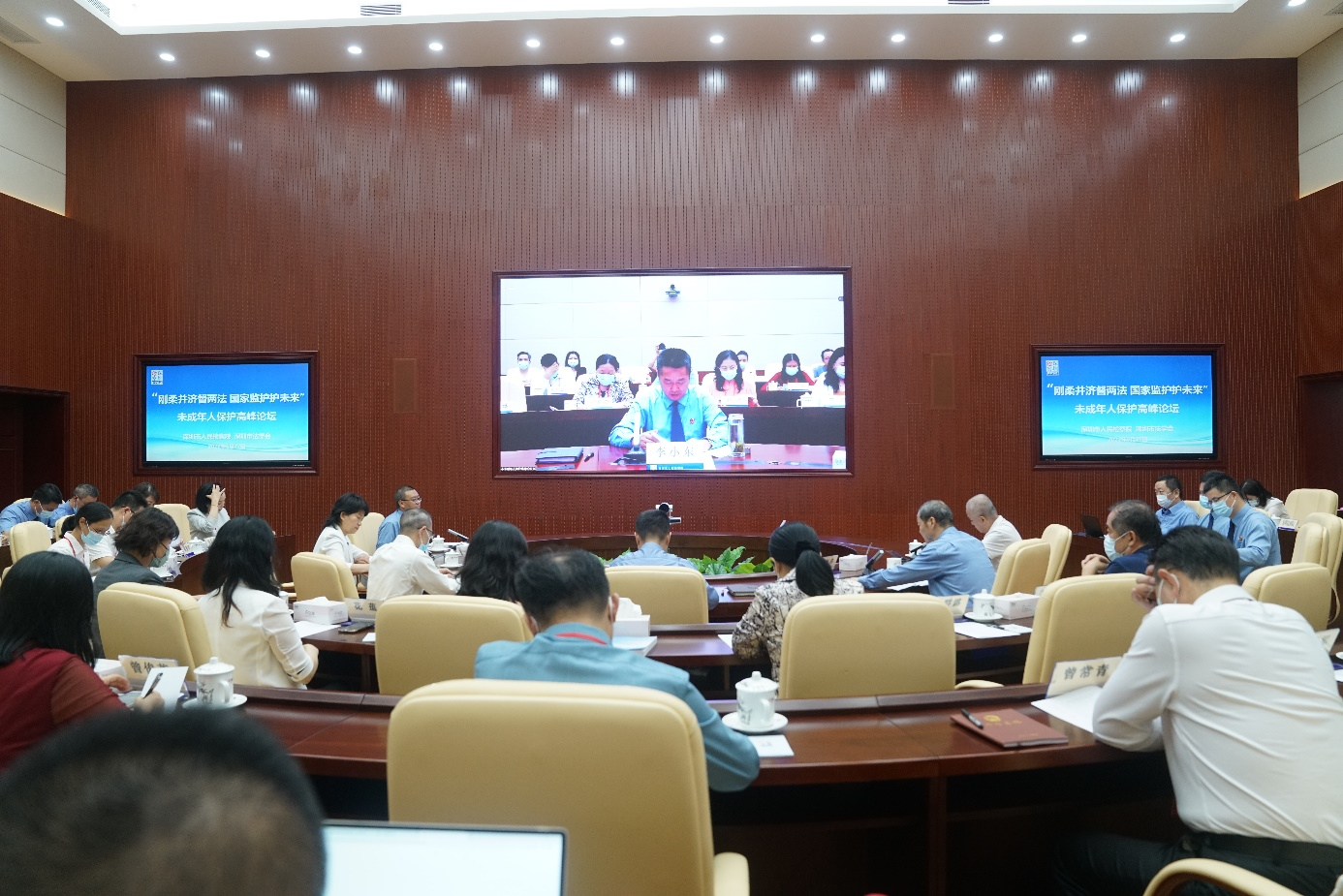 此次高峰论坛采取“线上+线下”的方式,最高人民检察院第九检察厅李峰副厅长,广东省人民检察院第九检察部曲松涛主任,北京师范大学宋英辉教授、何挺教授,上海社会科学院法学研究所姚建龙研究员,暨南大学张鸿巍教授,市法学会党组成员、专职副会长陈振波、市社会组织研究院饶锦兴院长,市未成年人法学研究会喻志蕴理事,民政、教育、妇联、共青团等有关单位人员和部分市人大代表、政协委员出席并发言。