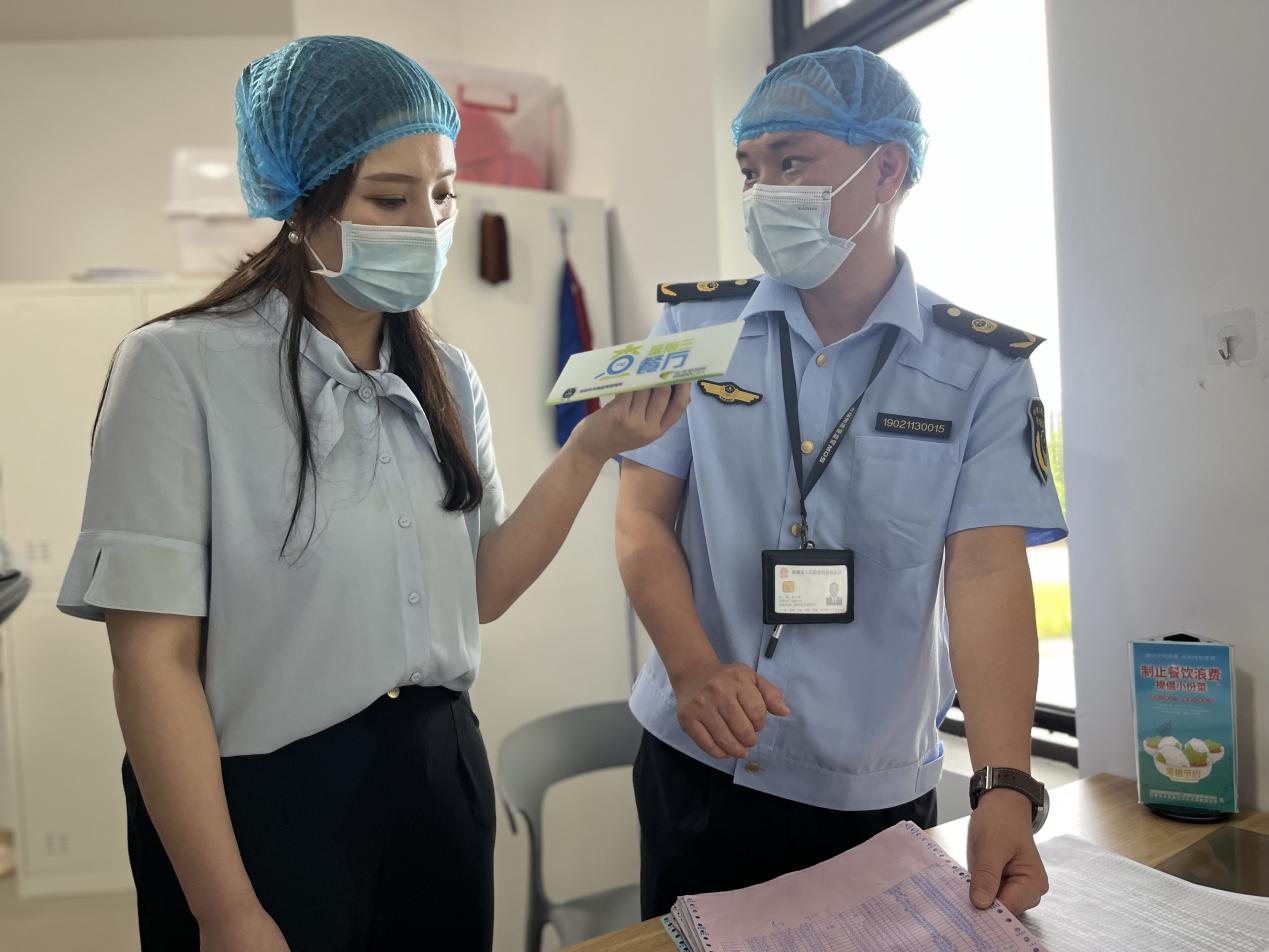 在索证索票方面,执法人员同样提出三点细节问题,一是供应商资质复印件未加盖公章,不符合规范,需尽快完善;二是食堂未能及时提供肉类检验检疫证明,该类证明应需及时索取保存;三是部分检验报告已快到期,需尽快更新。