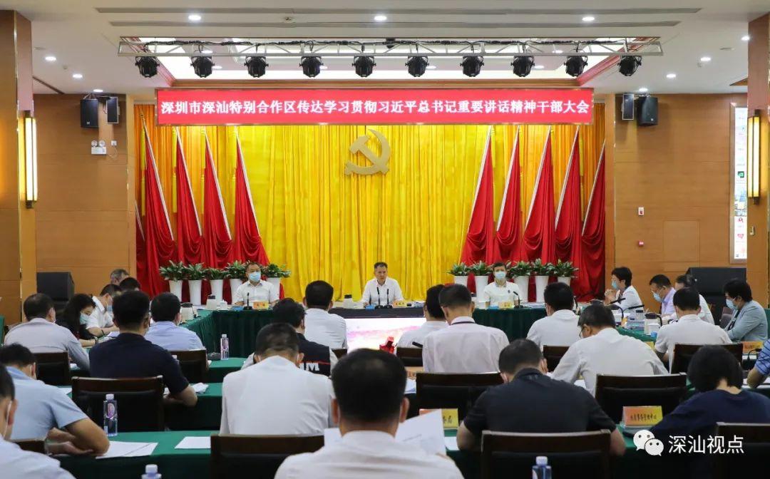 7月8日,深圳市深汕特别合作区党工委召开会议,传达学习习近平总书记出席庆祝香港回归祖国25周年活动系列重要讲话精神、习近平总书记在湖北武汉考察时的重要指示精神、国务院《新型冠状病毒肺炎防控方案(第九版)》文件精神,及省委常委会会议、市委常委会会议精神,全省、全市学习贯彻习近平总书记重要讲话精神干部大会精神,研究部署深汕特别合作区贯彻落实工作。