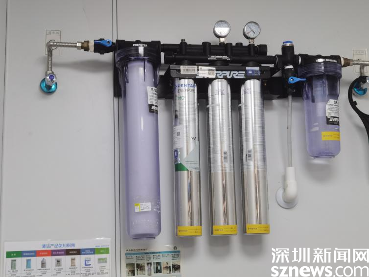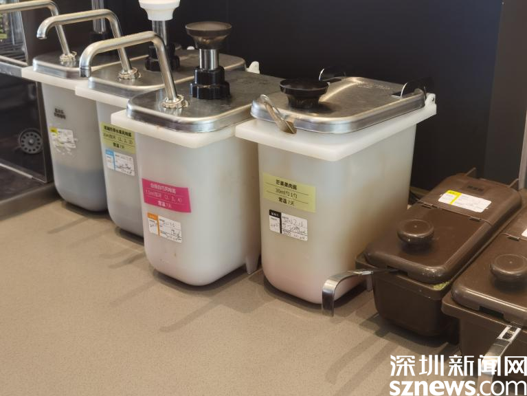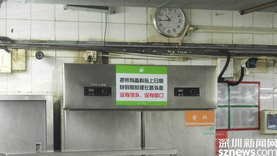 该店食材使用时间标记清晰,台面上设置了计时器提醒员工按时清洁消毒,冰箱外有温度显示,净水器上有标签标识滤芯更换时间。执法人员对该店的各项情况表示肯定。