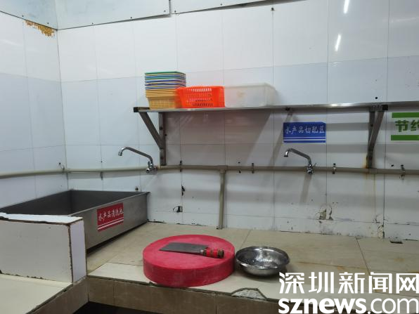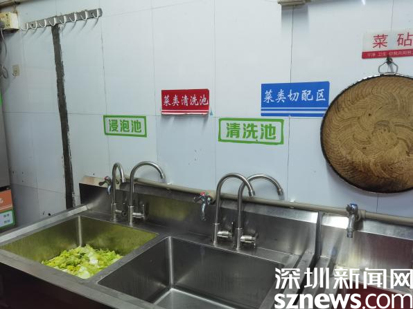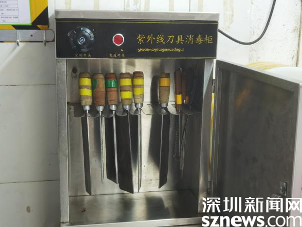 该餐厅的食材处理分区与刀具紫外线消毒柜。