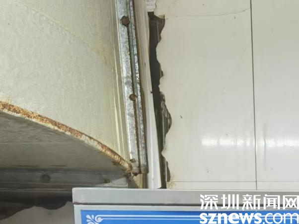 五谷芳乳鸽王海鲜餐厅:冰柜边有污渍,墙体剥落需整改