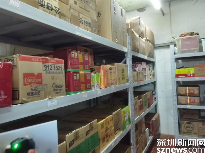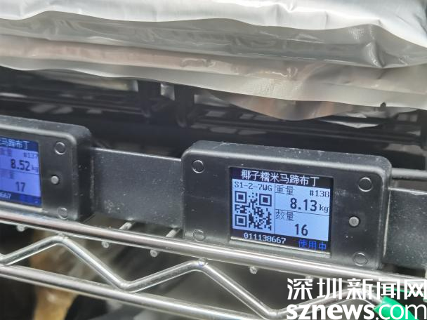 在该店的仓库,员工介绍道,仓库采用了视觉货架与重力货架。拿起产品时,货架上的智能电子屏立刻显示相应信息,方便店员清点库存。但仓库中的货架并没有隔墙放置,按照食品安全规定,食品应隔墙十厘米存放,应尽快改进。