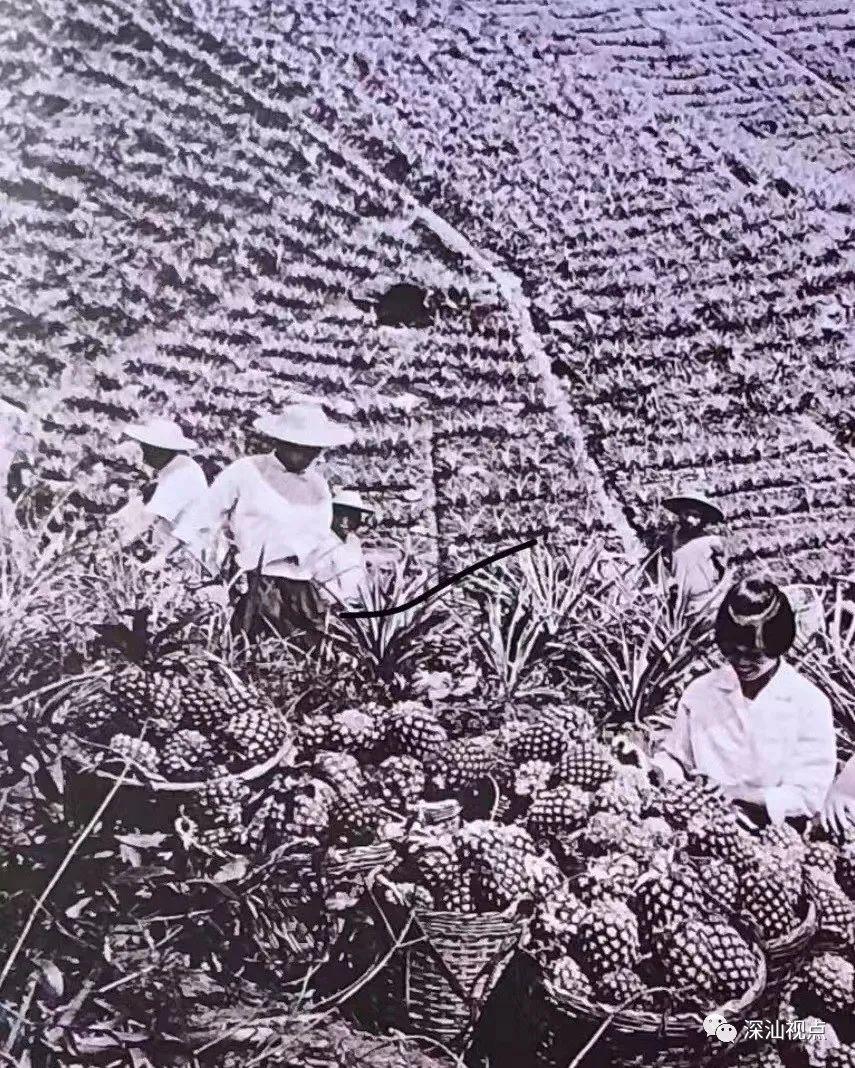 位于福田区的深圳博物馆中收藏着一张西南村果农采摘菠萝的老照片。刘瑞卿依旧清晰地记得2019年在馆中看到这张照片时的心情——“我当时为我们村的菠萝产业引以为豪,想起了70年代几乎每家每户都在种菠萝的盛况。”