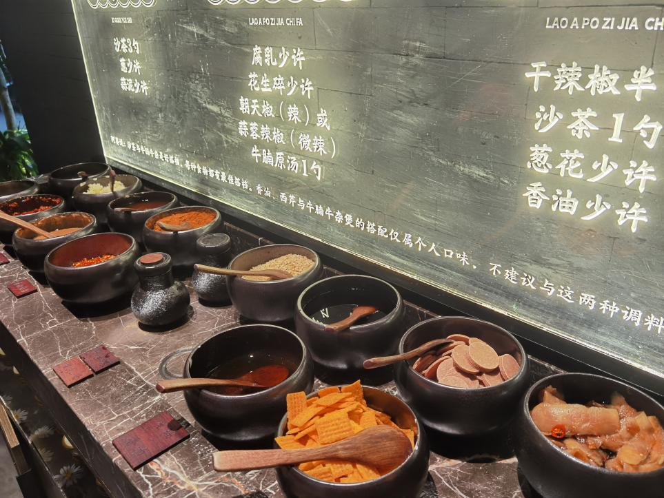 在该餐厅的调料区,工作人员介绍,该餐厅的调料均为少量多次备货,确保食材新鲜。执法人员提醒该餐厅,应引导顾客戴口罩取调料,确保疫情防护到位。