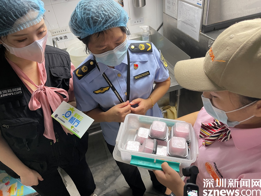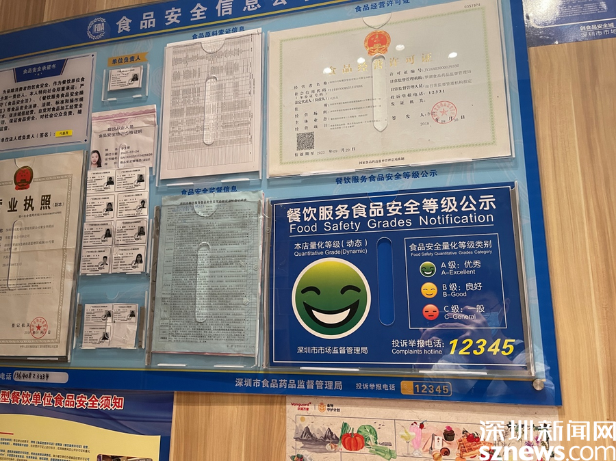 随后,执法人员一行来到了莲塘小学对面华润万家内的吉野家及乐凯撒披萨进行检查。吉野家目前食品安全量化等级为B级,依照食品安全相关规定,执法人员来到餐厅后厨,依次检查了半成品冰柜、操作间、保洁间、炸物间等区域。检查发现,吉野家后厨虽较为狭小,但整体分区合理,操作流程顺畅,整体环境良好。执法人员也指出,保洁柜在非高峰时段需密闭,保证餐饮具的清洁。经检查,吉野家可申请升A级。