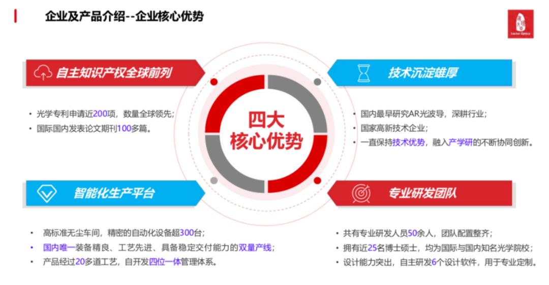 技术和工艺开发方面大量创新,填补了国内阵列光波导规模化制造的空白,补齐AR光学产业链短板;