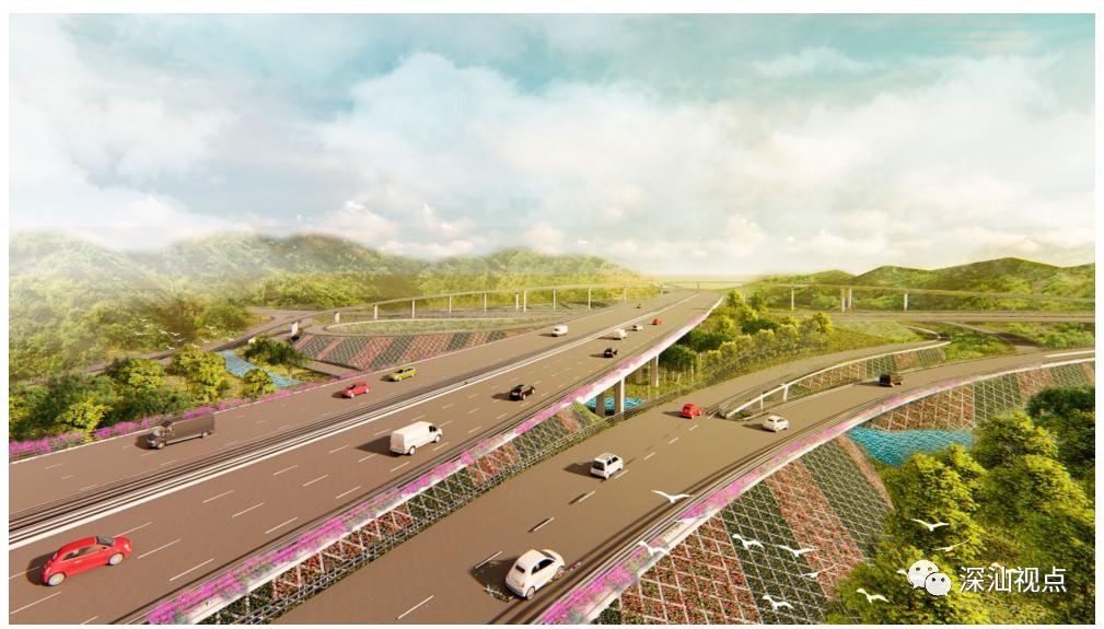 通港大道起于红海大道,终点接深汕大道,全长约10.6公里,按双向8车道标准建设,设计速度 60公里/小时,总投资概算37.1亿元。
