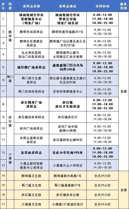 据了解,从9月13日起,四镇均有一个核酸检测采样点服务时间延长至22:00。四镇卫生院核酸检测采样点执行24小时服务采集时间,除特殊人员免费采集外,其他人员自费采集。