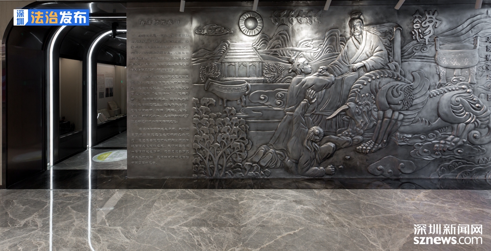 卓建法律博物馆序厅是皋陶獬豸断案图浮雕。(卓建律所供图)
