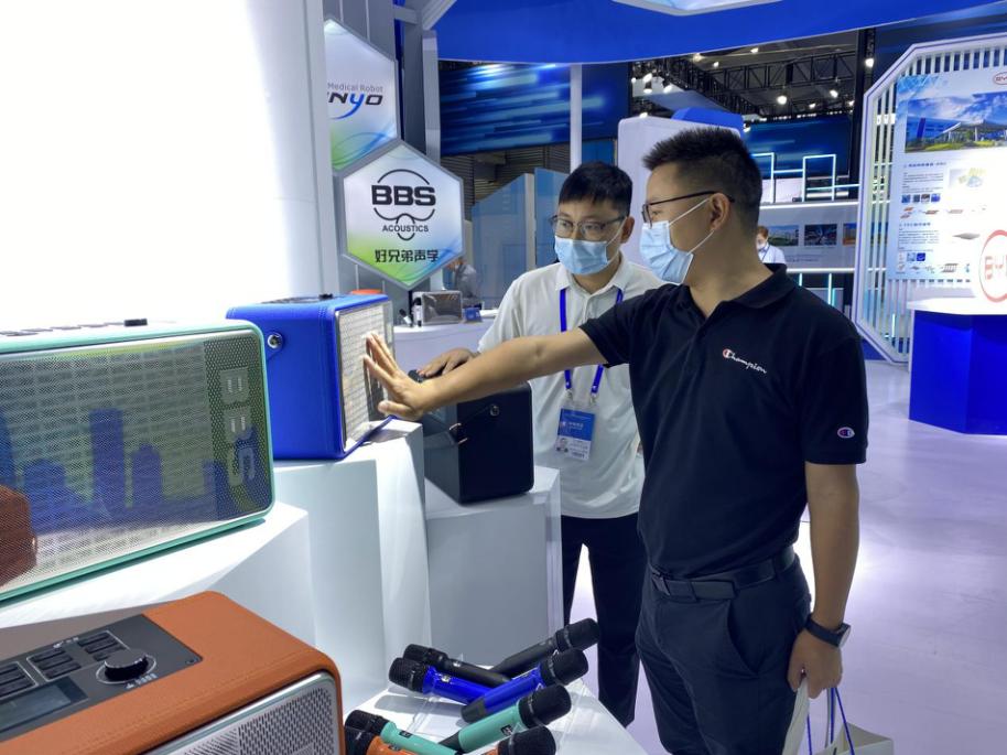 深圳市好兄弟电子有限公司(简称“好兄弟声学”)主要从事电声精密零组件及精密结构件、智能整机、高端设备的研发、制造和销售,目前已在多个领域建立了综合竞争力,也是深汕特别合作区省级专精特新企业。在本届高交会,好兄弟声学多款新型音响设备在深汕展区亮相,其中造型独特、色彩多样的无线音响最为吸睛。