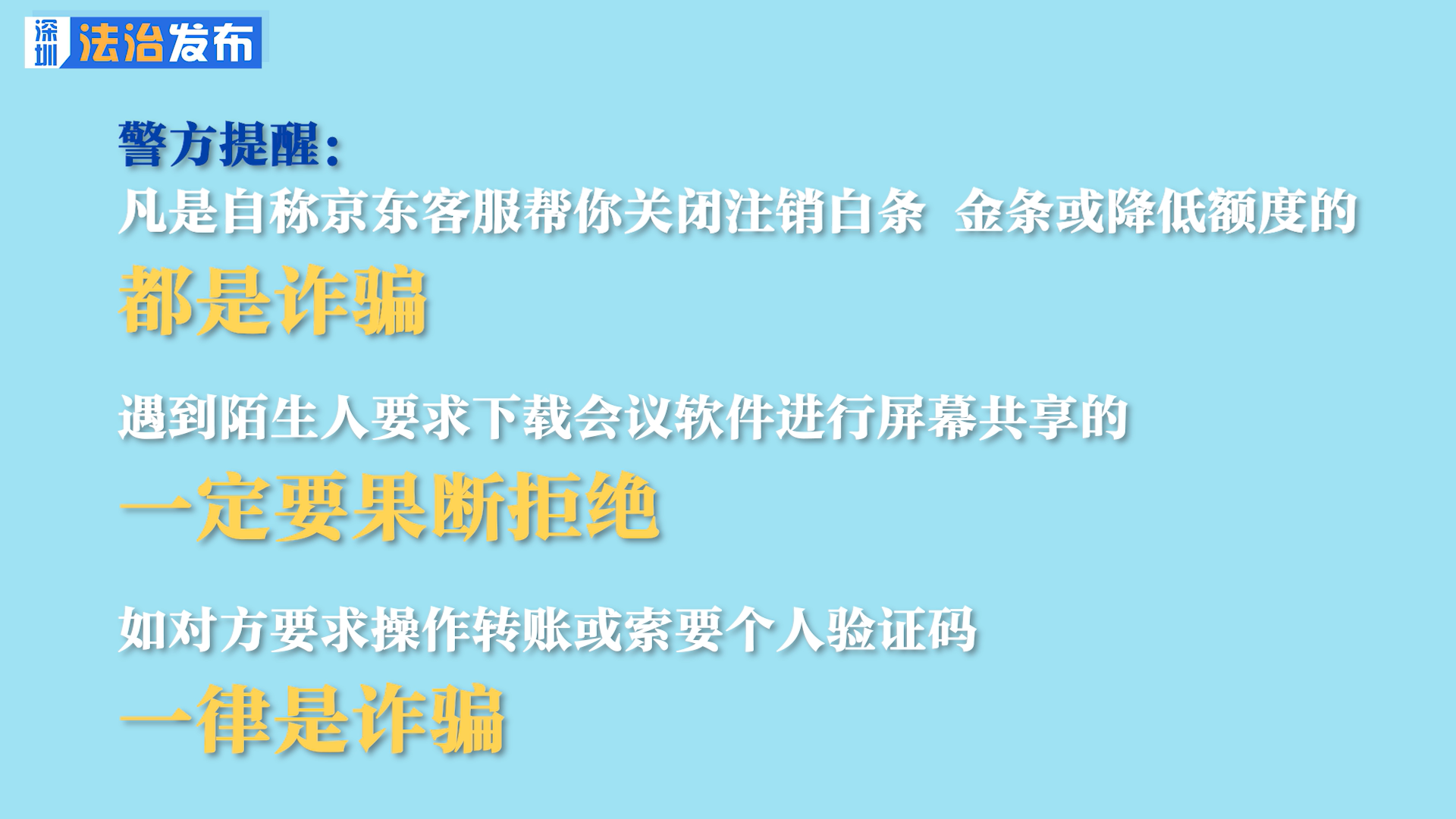 凡是自称京东客服帮你关闭注销白条、金条,或降低额度的,都是诈骗;