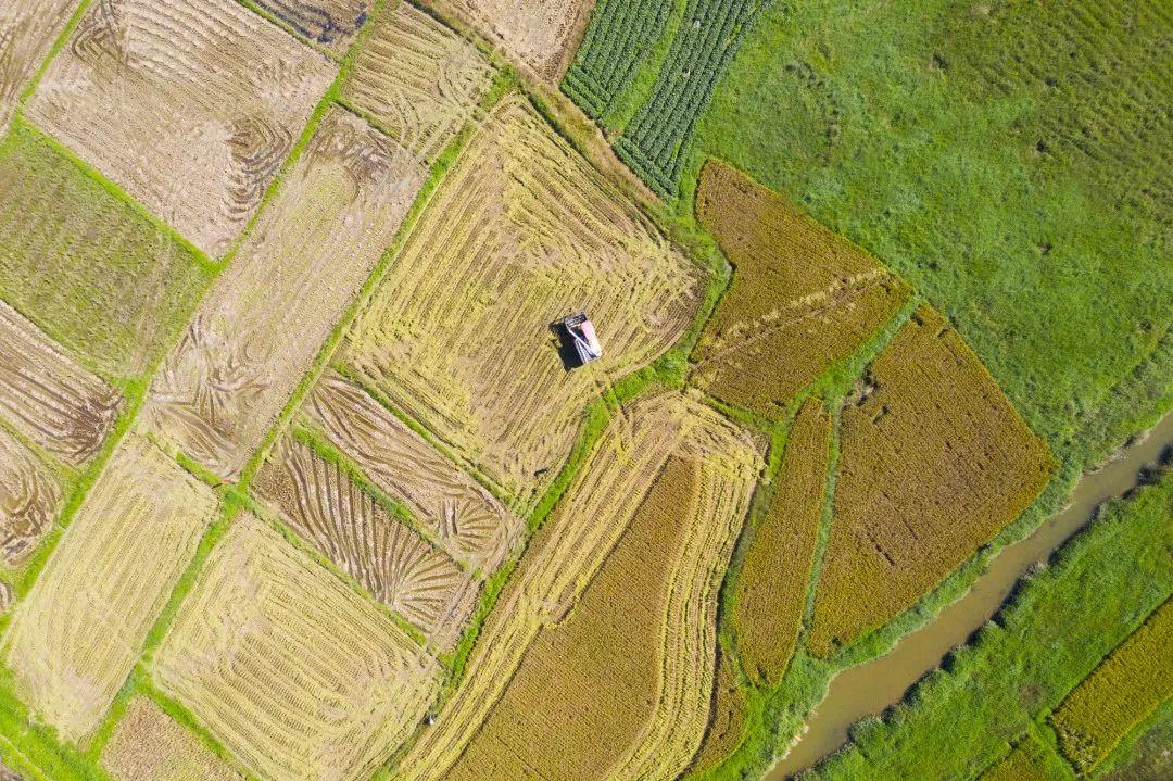 整片稻田都被“剃”了整齐的“寸头”